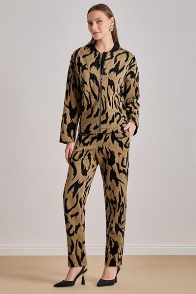 Bilekte Boy, Havuç Paça, Leopar Baskılı, Çok Renkli, Jakarlı Pantolon
