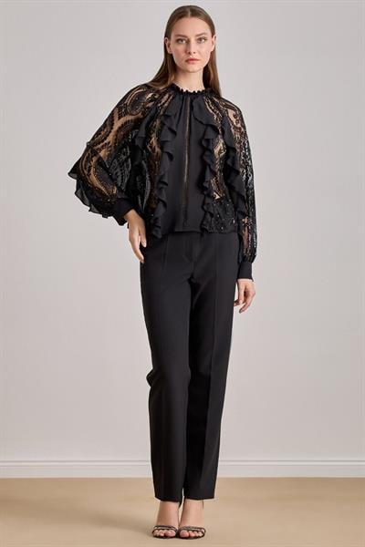 Dökümlü Siyah Krep Bluz (3U1K25555UR010)