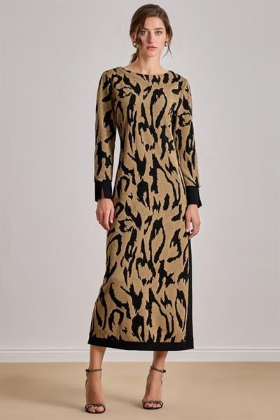 Maxi, Yırtmaç Detaylı, Leopar Baskılı, Çok Renkli, Jakarlı Elbise